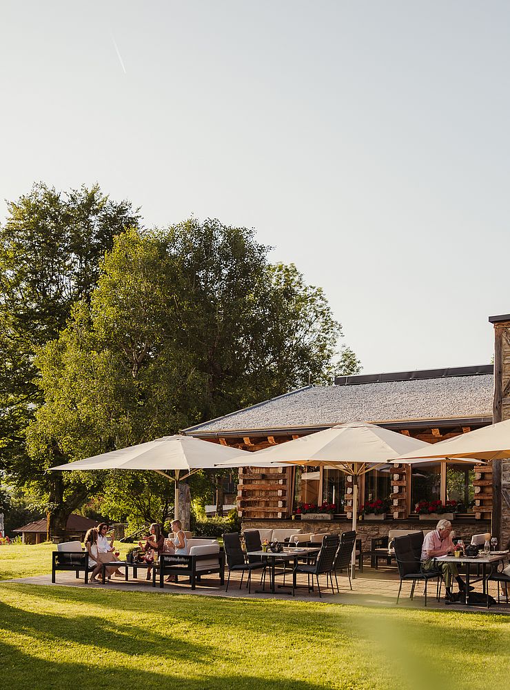 In de zomer kunt u op ons terras van de avondzon genieten. Met een koud drankje en regionale lekkernijen laat u uw blik over het heerlijke panorama dwalen. In het grillhuisje wordt bij mooi weer het eten direct voor uw neus op de barbecue bereid.