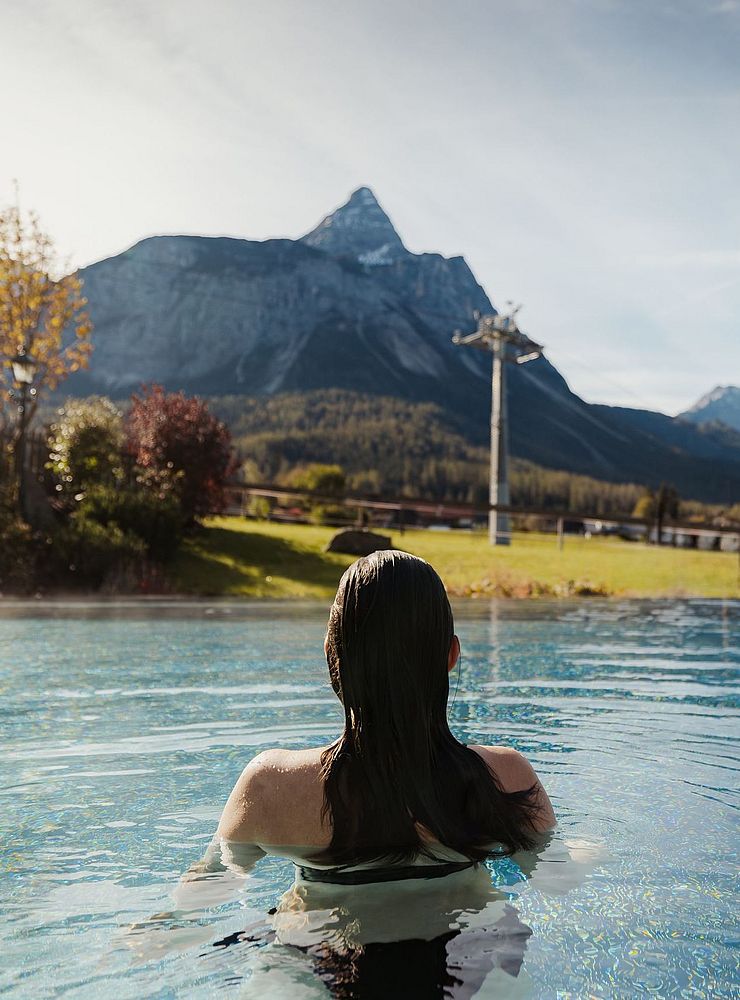 Die Zehen ins Wasser strecken. Spüren, wie einen Wärme umfängt. Einfach ins wohltuende Wasser gleiten. Die ersten Züge machen und staunen im Angesicht der Berge. Denn das Panorama ist einzigartig. Raubt einem den Atem. Und das Beste ist, es kann zu jeder Jahreszeit von unserem wohltemperierten Infinity-Felsenpool aus bewundert werden.