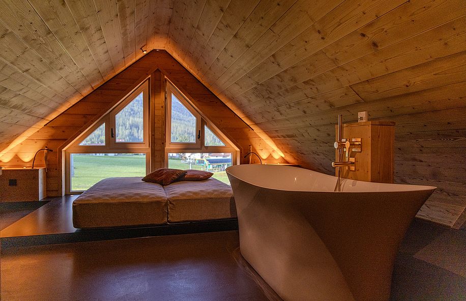- Kuschelnest mit freistehender Badewanne (als Schlafgelegenheit für Kinder nutzbar; mit Tür getrennt)